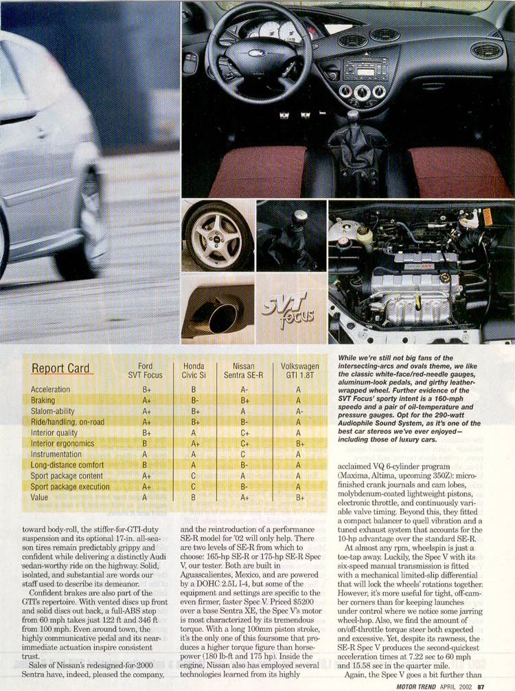 2002 Ford SVT Focus vs Honda Civic Si vs Nissan Sentra SE-R Spec V vs Volkswagen GTI 1.8T