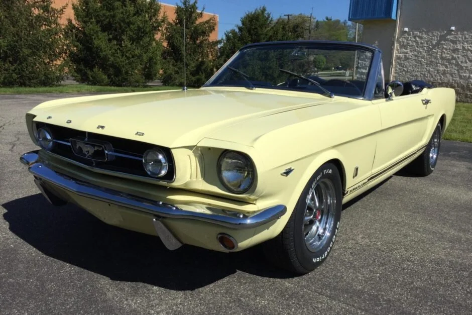 This 1965 Ford Mustang GT convertible is powered by a 289ci A-code V8 paired with four-speed manual gearbox and was recently acquired by the selling dealer from its previous owner of 23 years. An early 1990s refurbishment is said to have included a repaint in Springtime Yellow as well as interior reupholstery in black vinyl. The car is equipped with front disc brakes, heavy-duty suspension, a quick-ratio steering box, a dual exhaust system, fog lights, a five-gauge instrument cluster, a Rally-Pac tachometer and clock, and more. The rear brakes were serviced and fluid changes performed in preparation for the sale along with replacement of the pinion seal, spark plugs, and ignition wires. This Mustang GT is offered with records dating to 1989, trunk accessories, and a clean Ohio title.